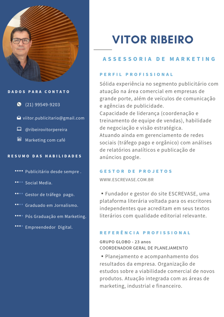 Vitor Ribeiro, Publicitário desde sempre, formado em Jornalismo com Pós Graduação em Marketing com especialização em Comunicação Digital.